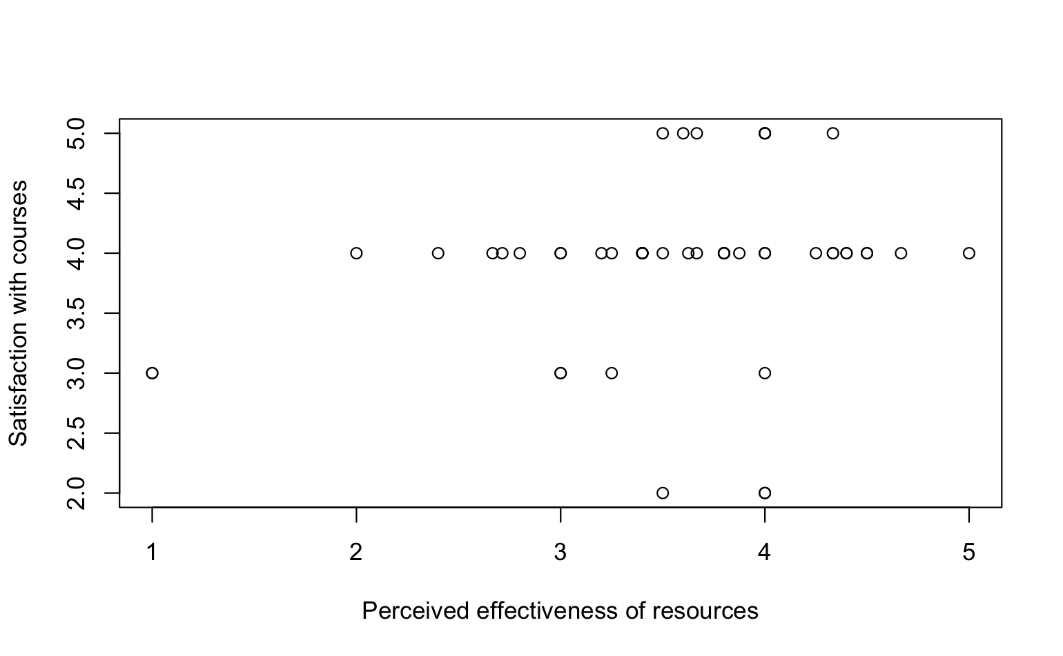 Students who rated their resources as more helpful tended to be slightly more satisfied, but the link wasn’t statistically strong.